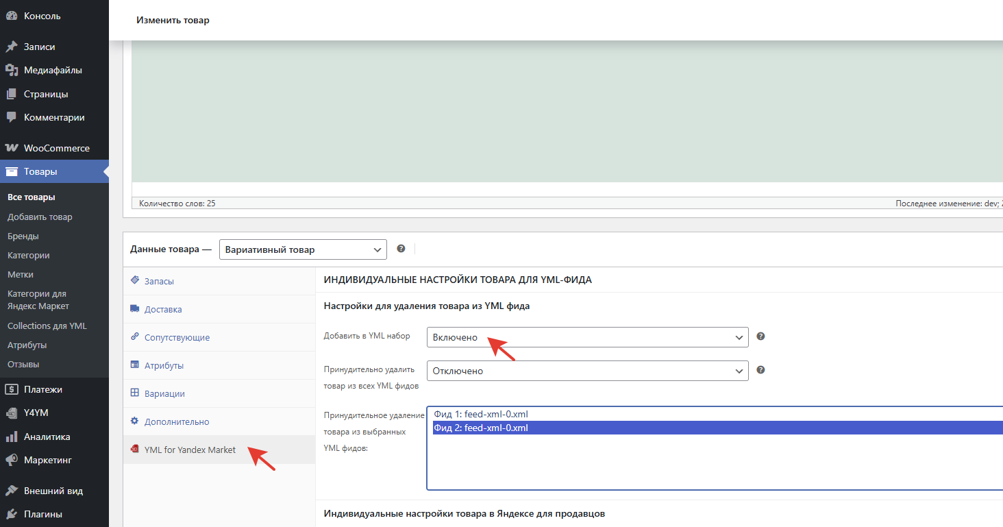 Аналогичным способом вы можете удалять товары из набора, только для этого необходимо выбрать пункт "Удалить из YML набора".